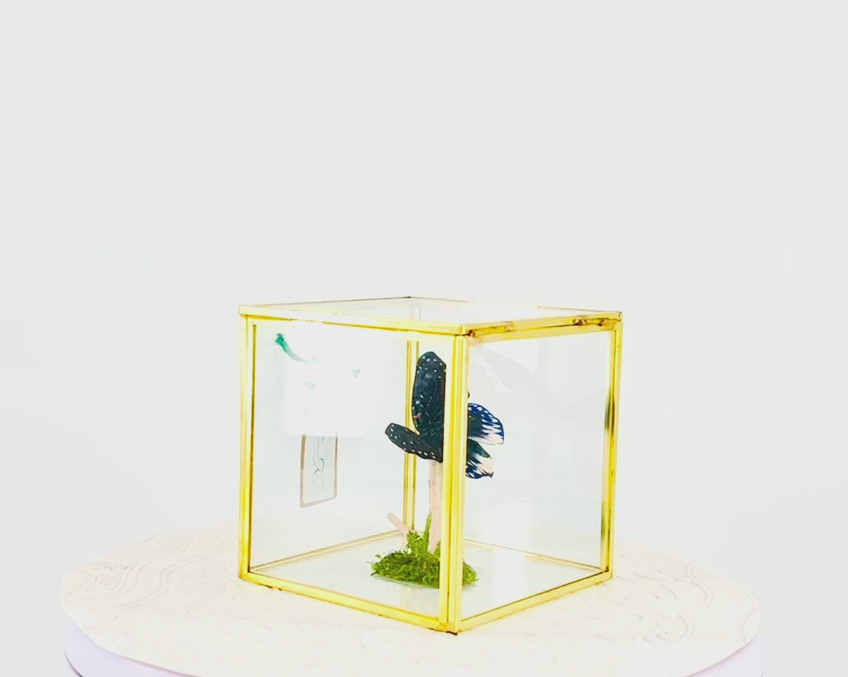 The Cube | Tabletop | Galaxy Moth | Centerpiece | Blue Black White | Flutter by Katie Handmade Butterfly Sculpture Art | Home Decor | Indonesia
