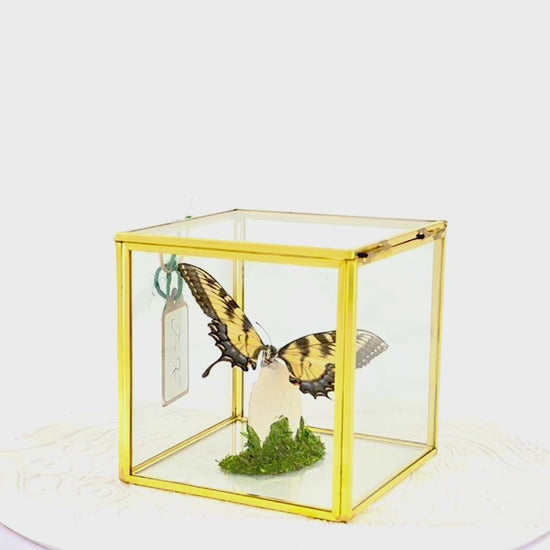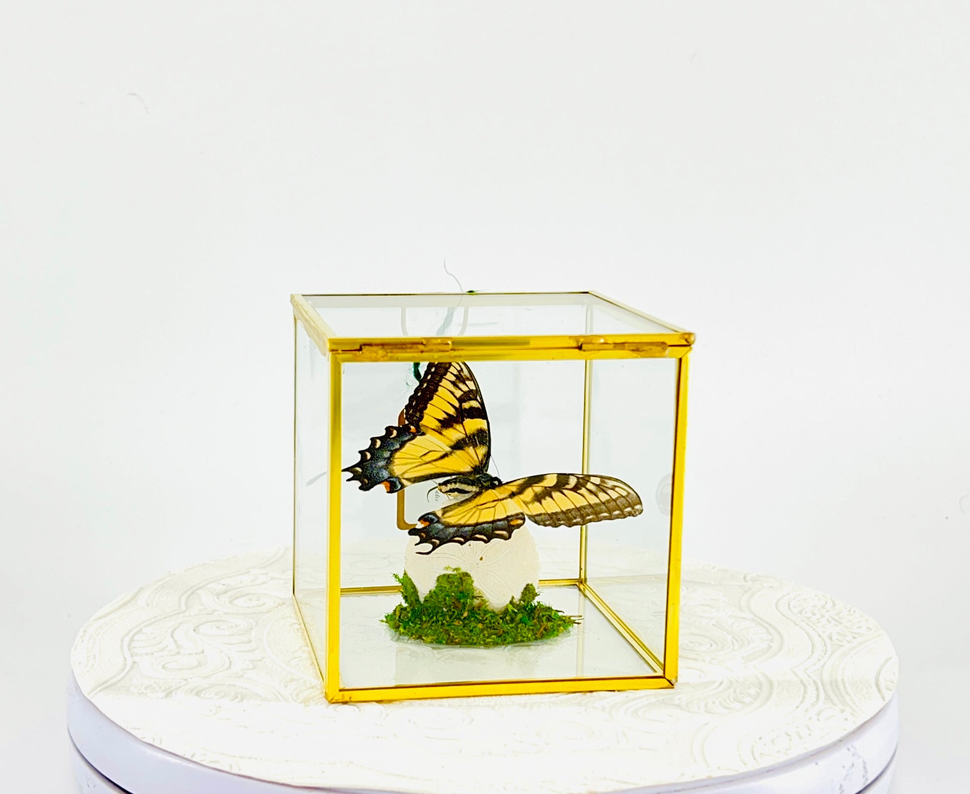 The Cube | Centerpiece | Eastern Tiger Swallowtail | Yellow Black Blue | Flutter by Katie Handmade Butterfly Sculpture Art | Home Decor | North America